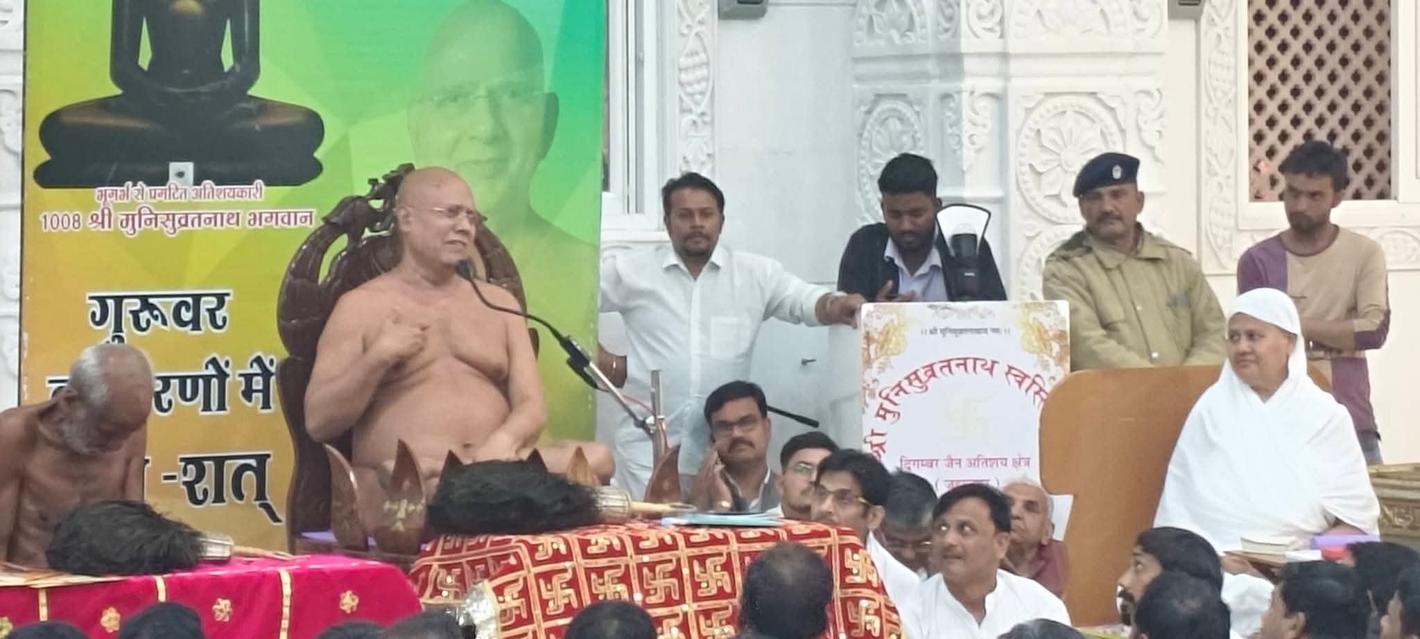 आचार्य श्री प्रज्ञा सागर महाराज ने बाबा मुनिसुव्रतनाथ एवम जिनालय के दर्शन किए उसके बाद यह पदयात्रा धर्म सभा में परिवर्तित हो गई। इस अवसर पर गणिनी गुरु मा स्वस्तिभूषण माताजी ने कहा कि जिनधर्म की प्रभावना में आचार्य श्री का बहुत बड़ा योगदान है पुरानी स्मृति को बताते हुए गुरु मां ने कहा कि मेरा गुरुदेव से जबसे संबंध है जब यह ब्रह्मचारी अवस्था में विवेक भैया के रूप में थे और में उस समय बहुत छोटी थी। उन्होंने कहा जहां सागर होते हैं वहां सागर बन ही जाता है, इसलिए भक्तों का सागर यहां आया है।