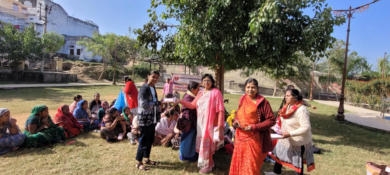 ।गरिमा प्रोजेक्ट के तहत झिझक छोड़ो चुप्पी तोड़ो खुल कर बोलो के तहत दिनांक 5/1/26को भोई वाडा स्थित बगीचे में अपेक्स से प्राप्त 100 सेनेटरी नेपकिन महिलाए और बच्चियों को दिए गए ।आज 100 नेपकिन भी कम पड़ गए ।कुछ महिलाओ को ना कहना पड़ा ।