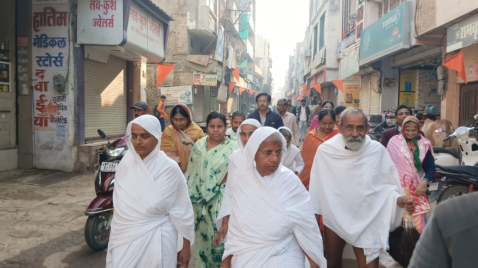 माताजी के मंगल प्रवेश पर समाज के श्रावकों ने आर्यिका संघ के पाद प्रक्षालन कर आरती उतारी और मंगल आशीर्वाद प्राप्त किया माताजी की आगवानी के लिए यहां पूर्व से विराजित मुनि श्री प्रणुत सागर जी के संघस्थ क्षुल्लक विनियोग सागर जी ने भी आगवानी की , जिन मंदिर में आर्यिका संघ ने भगवान के वेदियों के दर्शन कर मुनि श्री प्रणुत सागर जी का भी आशीर्वाद प्राप्त किया ,धर्म सभा के पूर्व आर्यिका श्री ,मुनि श्री और क्षुल्लक जी महाराज को समाज जन ने शास्त्र भेंट किया ,कल्पना काला द्वारा मंगलाचरण किया गया, धर्म सभा में विश्वयश मति जी माता जी ने बहुत ही संक्षिप्त और मधुर आवाज में कविता की पंक्तियां प्रस्तुत की साथ ही बोला कि आप जो कुछ अच्छा होता है उसका श्रेय खुद लेना चाहते हो और यदि कुछ बुरा होता है तो भगवान को दोष देते हो ,