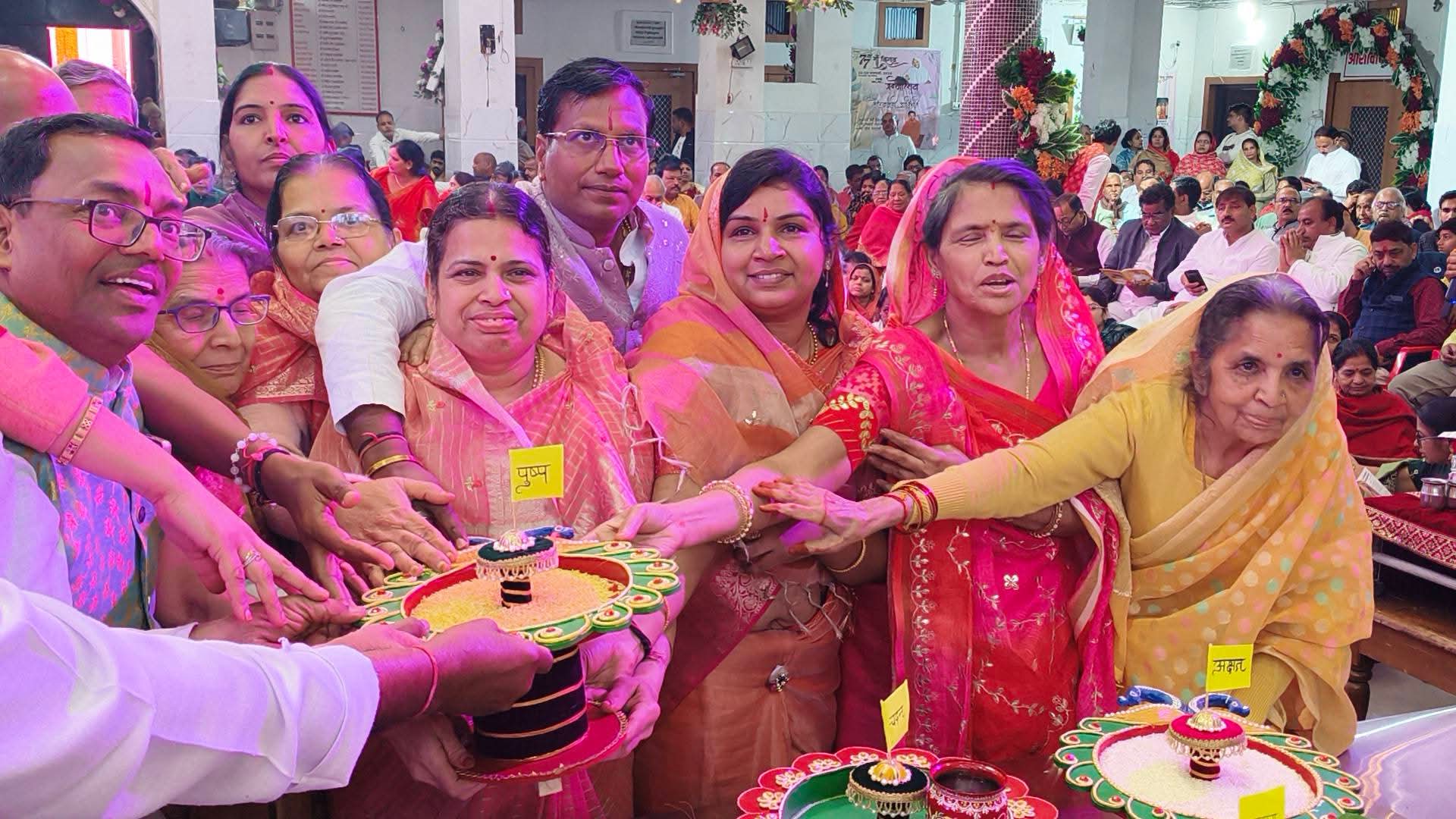 सुबह की बेला में आयोजन के क्रम मे सर्वप्रथम पूर्वाचार्यों को नमन करते हुए अर्घ्य समर्पित किए गए इसके उपरांत गुरु मा की रजत द्रव्य समर्पित करते हुए भक्ति नृत्य करते हुए भक्ति उल्लास के साथ पूजन किया गया। पूजन की बेला में सभी भक्त भक्ति से सराबोर हो गए।