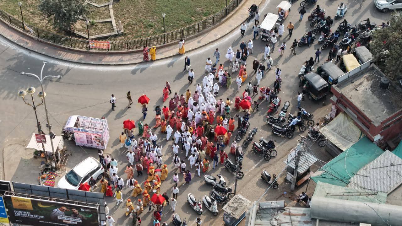 इस आयोजन में परम पूज्य गणिनी आर्यिका 105 विभा श्री माताजी का भी संघ सानिध्य प्राप्त हुआ। दोपहर की बेला में तलवंडी जैन मंदिर से शोभायात्रा निकाली गई जो कार्यक्रम स्थल एलेन सत्यार्थ परिसर पहुंची इसकी विशेषता यह रही कि इसमें गुरु मां केसाथ 25 पिच्छीकाधारी संघ शामिल हुए। तलवंडी चौराहा होते हुए जवाहर नगर स्थित सत्यार्थ एलन परिसर पहुंची।महिला शक्ति हाथों में धर्म ध्वजा लिए जयकारे लगाते हुए चल रही थी। बैंड-बाजों की धुन पर भक्ति नृत्य करते हुए श्रद्धालुओं ने पूरे मार्ग को भक्ति रस से भर दिया।