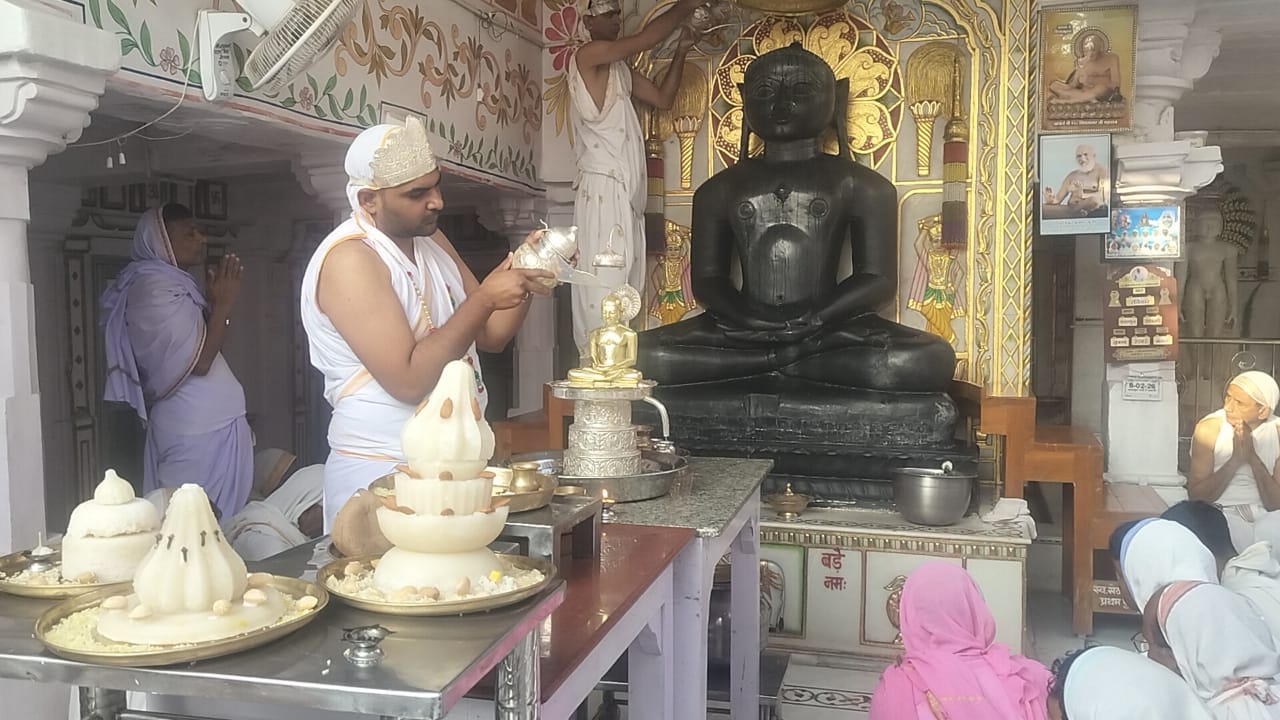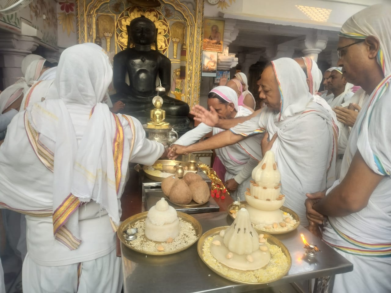इस अवसर पर आज जैन पाठशाला के छात्रों द्वारा की सामूहिक पूजन बड़े भक्ति भाव से वाद्य यंत्रों के मधुर स्वरों के साथ मनीषा नानावटी, कुसुम लता नानावटी के सानिध्य गई शाम को मंदिर की में 48 दीप विधान के दीप प्रज्वल किए गए एवं महा आरती की गई उपरोक्त जानकारी जैन समाज प्रवक्ता सुरेश चंद्र गांधी द्वारा दी गई