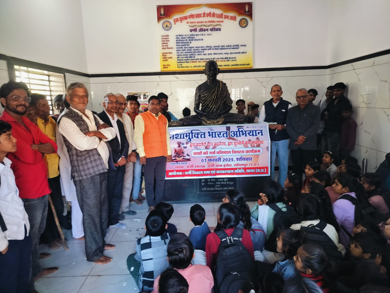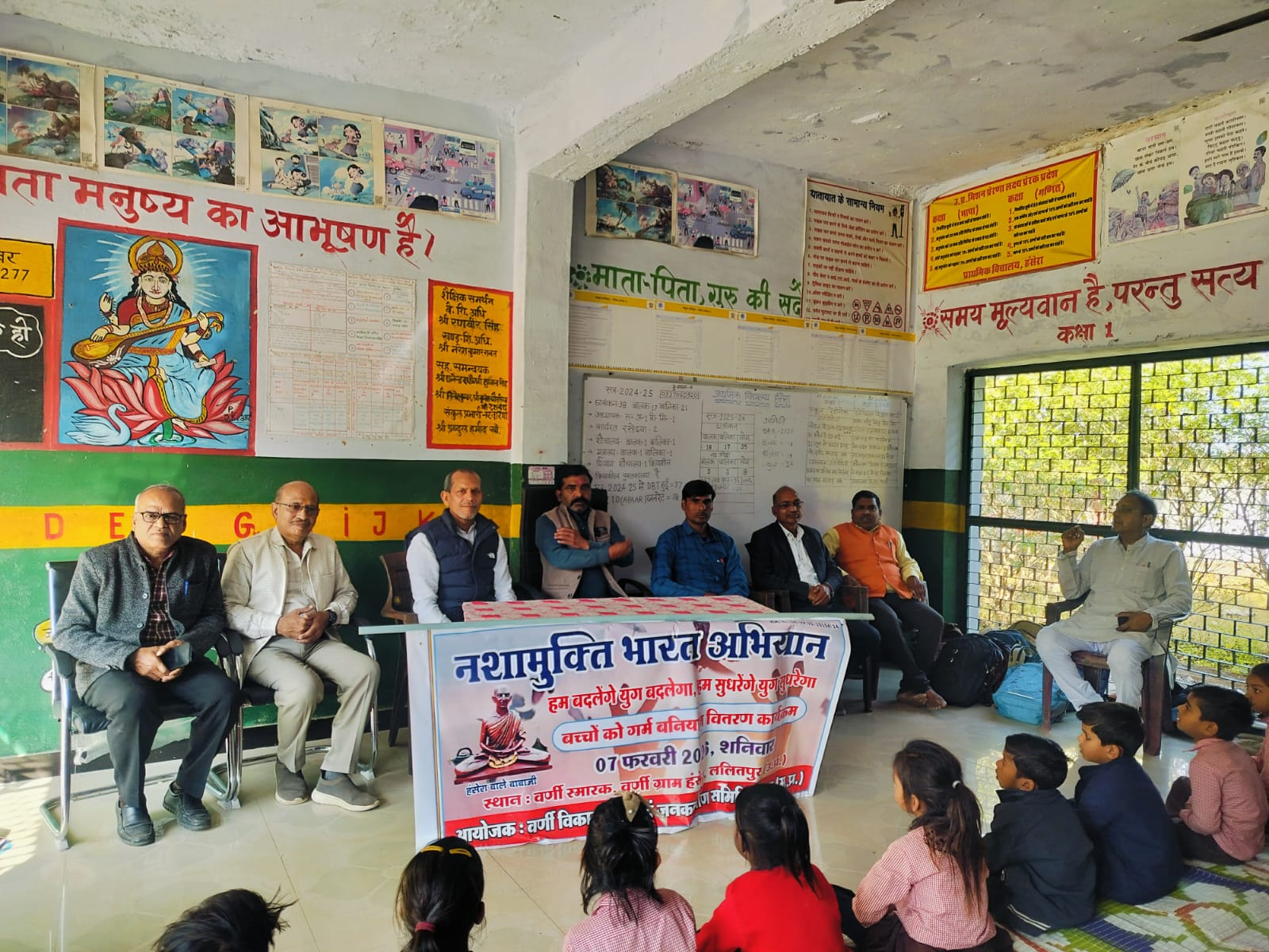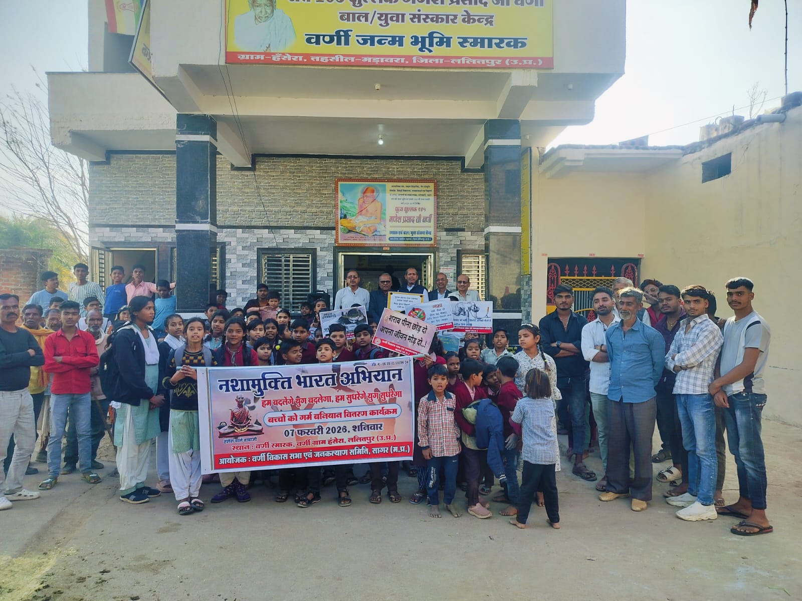 वर्णी ग्राम हंसेरा होगा, नशा मुक्ति, छात्र-छात्राओं सहित ग्रामीणों ने ली नशा छोड़ने की शपथ 200 बच्चों को गर्म बनियान का वितरण