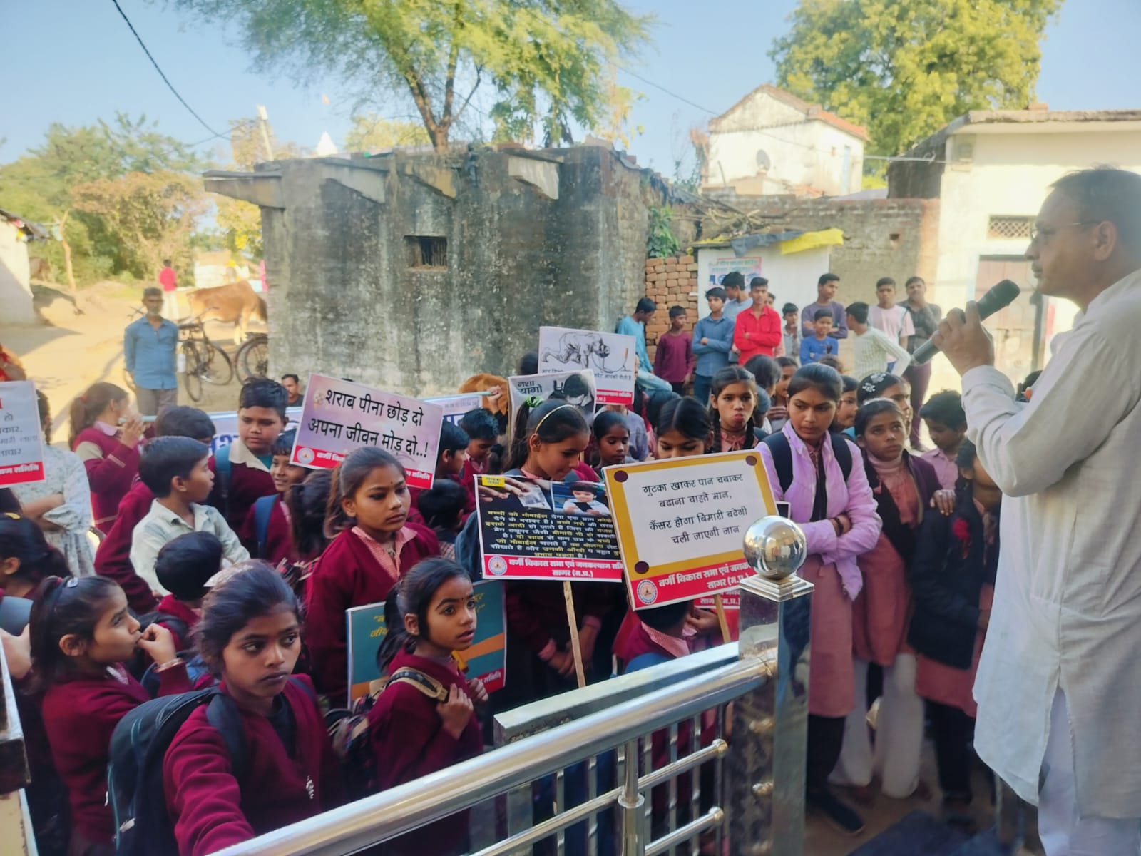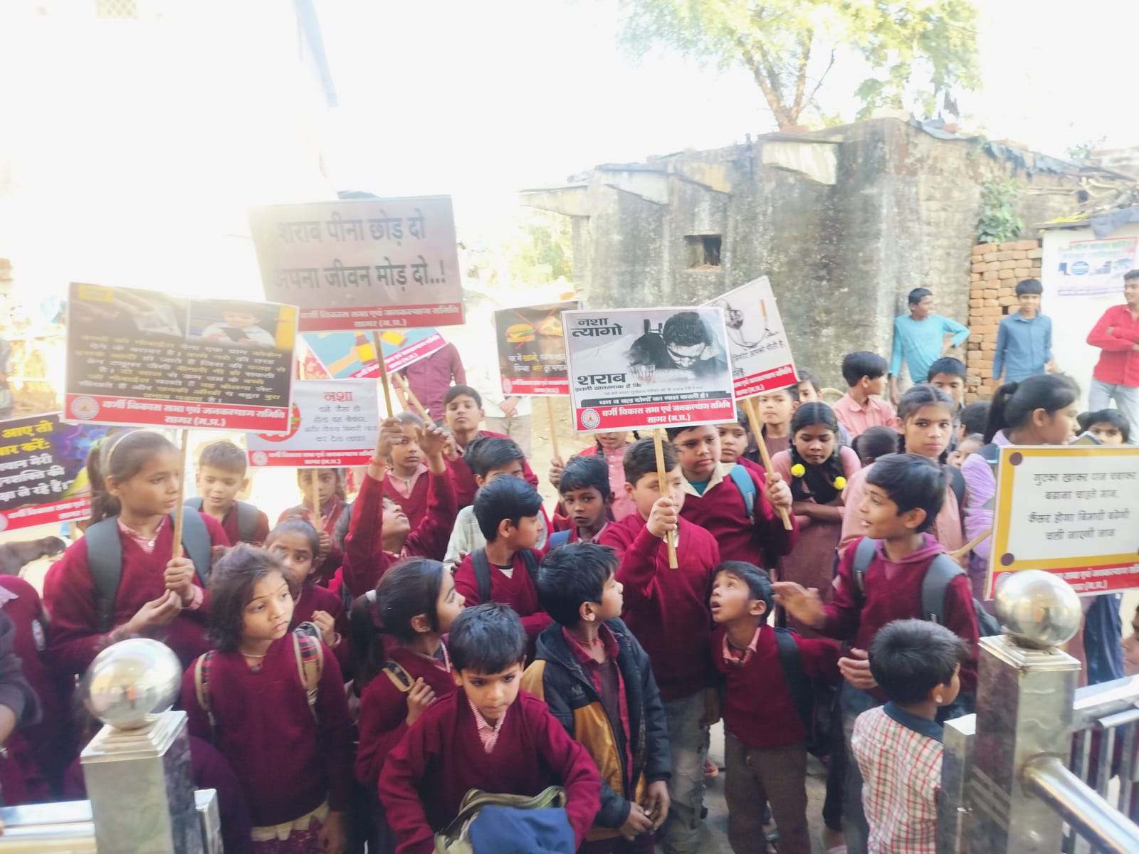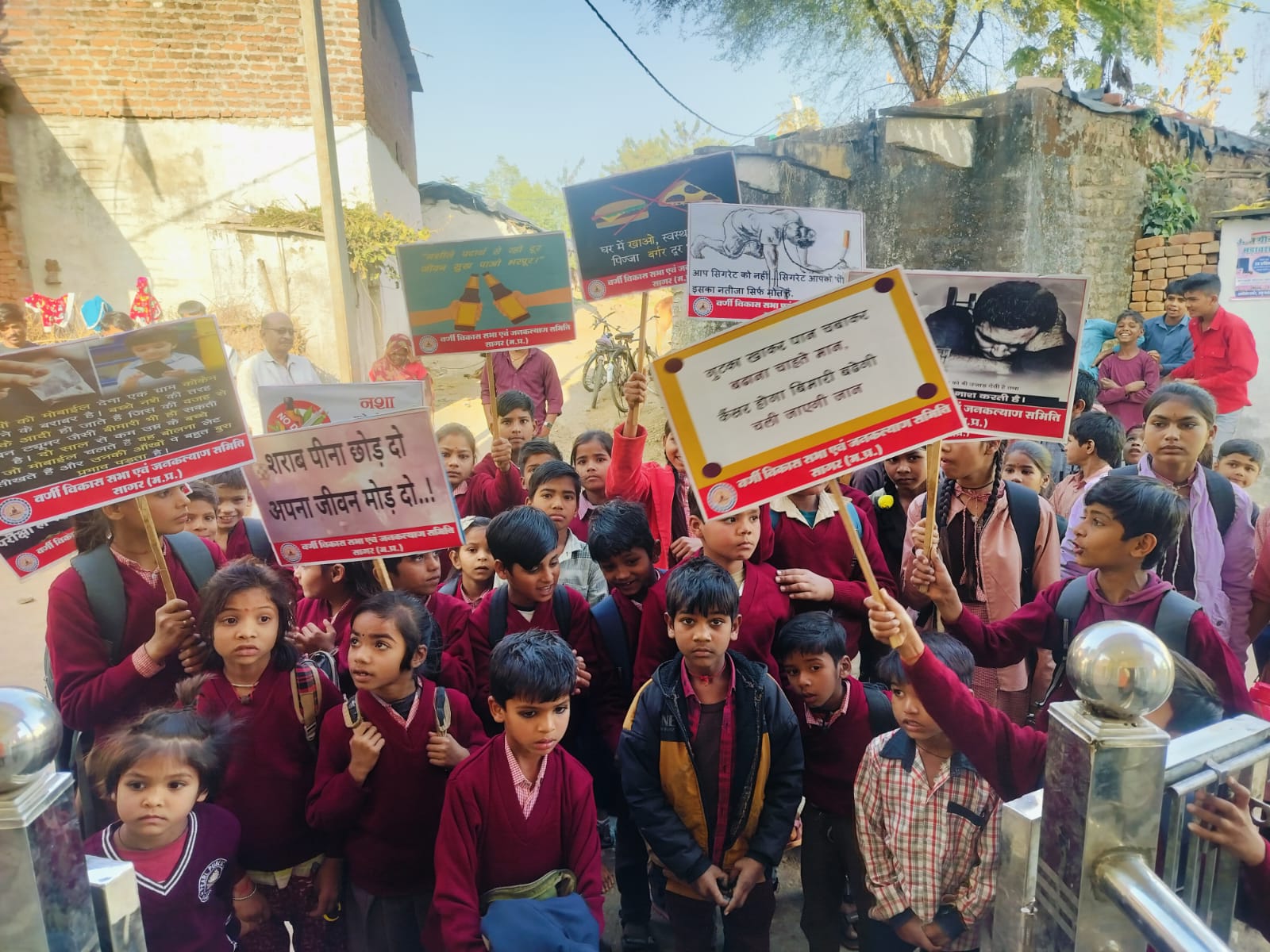 वर्णी ग्राम हंसेरा होगा, नशा मुक्ति, छात्र-छात्राओं सहित ग्रामीणों ने ली नशा छोड़ने की शपथ 200 बच्चों को गर्म बनियान का वितरण