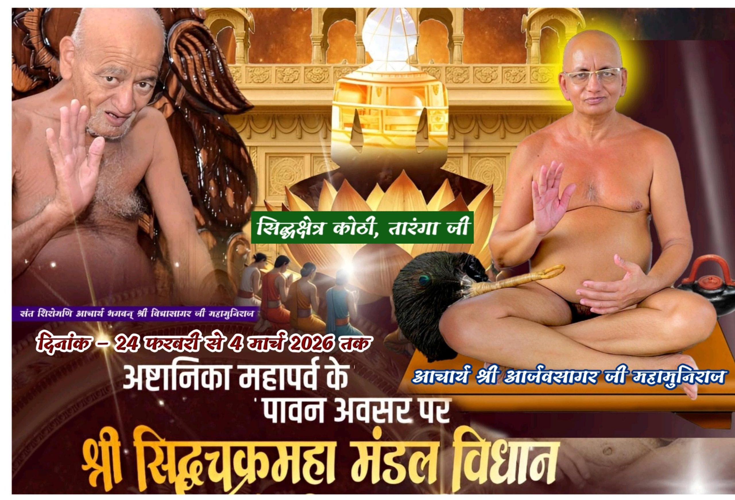 तारंगा जी में श्री सिद्धचक्र महामंडल विधान सानंद सम्पन्न हुआ परम पूज्य आचार्य श्री 108 आर्जवसागर सभामंडप में हवन करते हुए आहुतियां_दी गई इसके उपरांत श्री जी की शोभायात्रा निकाली गई।