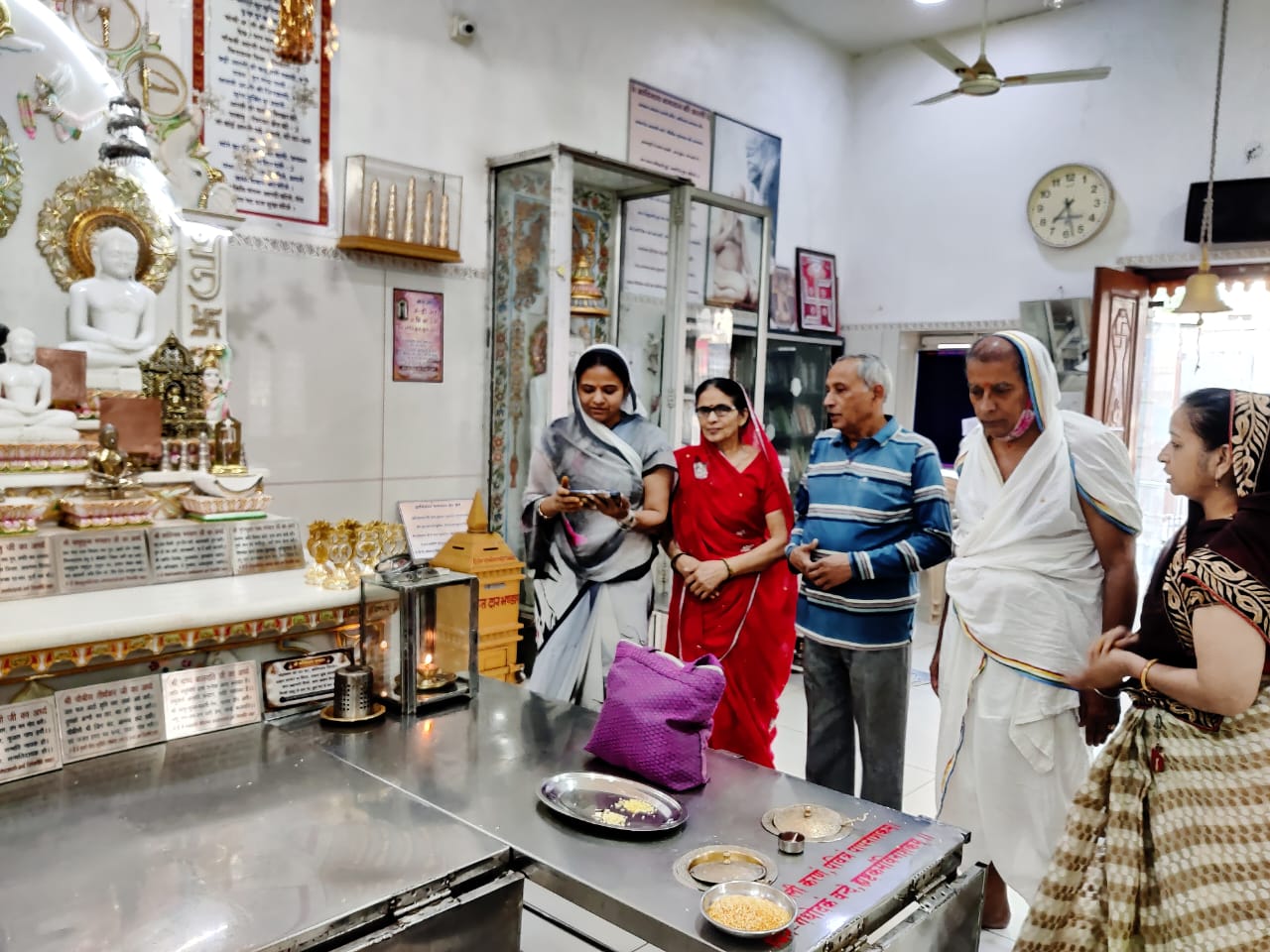 धामनोद में जैन समाज की सर्वोच्च गणिनी शिरोमणि ज्ञान मती माताजी के संयम दिवस के 71 वर्ष होने पर समाज जनों ने मंदिर जी अभिषेक कर शांतिधारा की व माताजी के अच्छे स्वास्थ्य की कामना की गई माताजी के चरणों में अर्ध समर्पित किया गया समाज सेवी प्रीति जैन व सुरक्षा जैन ने पीयूष जैन ने बहुत सुंदर आवाज में बोलकर अर्ध समर्पित करवाया