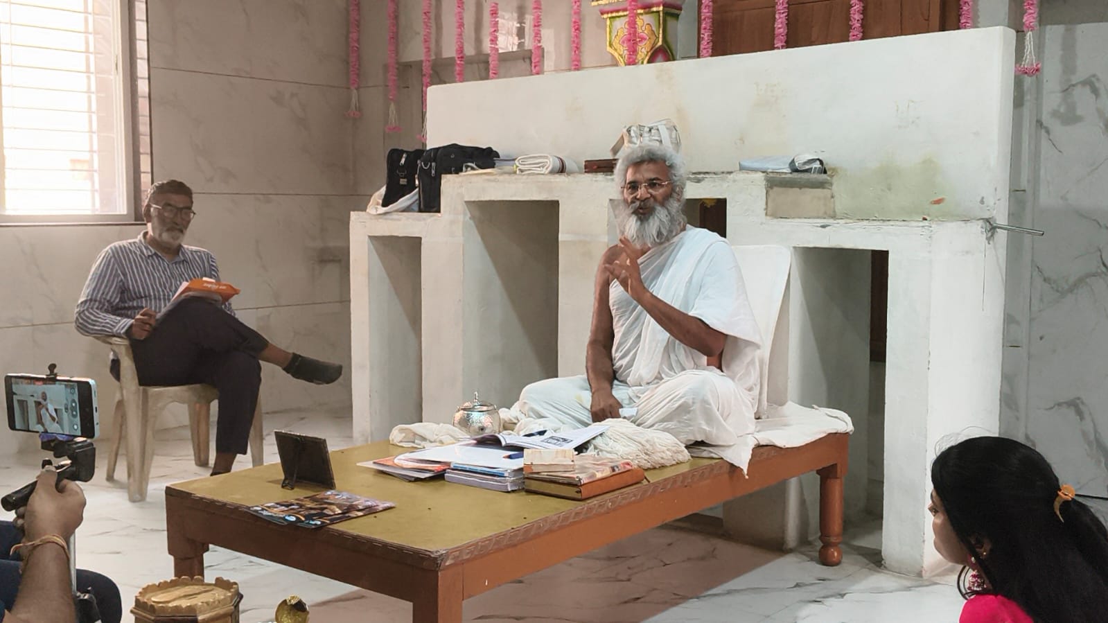 आचार्य श्री जिनमणिप्रभ सुरीश्वर महाराज ने पत्रकारों को किया संबोधित वर्तमान में हो रही हिंसा का मुख्य कारण एगो और स्वार्थ है शांति महावीर के सिद्धांत अहिंसा से ही संभव है। आचार्य श्री