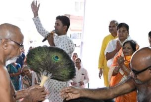धर्म परायण नगरी फागी में आज भारत गौरव आर्यिका रत्न 105 विज्ञा श्री माताजी की सुयोग्य शिष्या आर्यिका 105 विकक्षा श्री माताजी स संघ का भव्य मंगल प्रवेश हुआ। जैन समाज के मीडिया प्रवक्ता राजाबाबू गोधा ने अवगत कराया कि उक्त संघ श्री शांतिनाथ दिगंबर जैन मंदिर विमल परिसर बीलवा में 28 वें दीक्षा दिवस पर 28 दिवसीय शांतिनाथ महामंडल विधान की महाअर्चना करवाने के बाद चाकसू, चंद लाई, पीपला, माधोराजपुरा होता हुआ प्रातः काल फागी पहुंचा, जहां गांव की सीमा पर जैन समाज ने संघ की बैंड बाजे द्वारा भव्य अगवानी की गोधा ने बताया कि इस संघ में आर्यिका 105 ज्ञाता श्री माताजी, आर्यिका ज्ञायक श्री माताजी, आर्यिका ज्ञप्ताज्ञ श्री माताजी तथा बाल ब्रह्मचारिणी निशु दीदी साथ साथ थी, समाज द्वारा संघ को नगर भ्रमण कराते हुए जयकारों के साथ श्री पार्श्वनाथ जैन मंदिर के संत भवन में ठहराया गया, इससे पूर्व संघ का पाद प्रक्षालन कर आरती की गई। जिनालय में दर्शन के बाद आर्यिका विकक्षा श्री माताजी ने भरी धर्म सभा में श्रृद्धालुओं को सम्बोधित करते हुए कहा कि आज आपका साधुओं से मिलन हुआ है, आपका जीवन भी मंगलमय हुआ है, साधु के दर्शन मात्र से सात भव के कर्म नष्ट होते हैं, तथा आहार दान या साधु सेवा करने से 21 भव का कर्म नष्ट होता है अतः मनुष्य को साधु सेवा में लीन रहते हुए संयम के मार्ग पर चलना चाहिए ताकि मोक्ष की प्राप्ति हो। उक्त समय समाज सेवी श्री सोहनलाल झंडा,केलास कलवाडा, मोहनलाल झंडा, फागी अग्रवाल समाज के अध्यक्ष महावीर झंडा, फागी पंचायत समिति के पूर्व प्रधान सुकुमार झंडा, कैलाश चंद पंसारी, सुरेश गंगवाल,पारसनला, पारस चोधरी,महावीर मोदी, अशोक कागला, अशोक गिंदोडी,तथा त्रिलोक चंद पीपलू, सहित सारे श्रावक श्राविकाएं साथ साथ थे,इसी क्रम में ओमप्रकाश सर्राफ, सुभाष बाकलीवाल, पवन वैद,आर्दश वैद, दिनेश बोहरा, लक्की बाकलीवाल, निमित्त बाकलीवाल, भानु, कपिल वैद, सुनील जैन,व रेणु गोयल,साक्षी जैन,रेखा जैन आदि रहे।