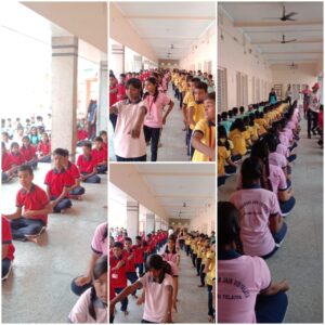 साथ ही क्लास 3 से लेकर क्लास 9 तक के बच्चों के बीच योगा का आयोजन किया गया बच्चों ने सूर्य नमस्कार आसन से लेकर योग एवं प्राणायाम की शिक्षा ग्रहण की योगा कराने का कुशल कार्य राज्य स्तरीय योगा शिक्षक आकाश सेठ की टीम ने किया साथ ही विद्यालय के शिक्षक शंकर वर्णवाल, बसंत सर ,मानसी ,कल्याणी ,कोमल , अर्चना मैम आदि ने इस कार्यक्रम को सफल बनाने में अपना योगदान दिया I