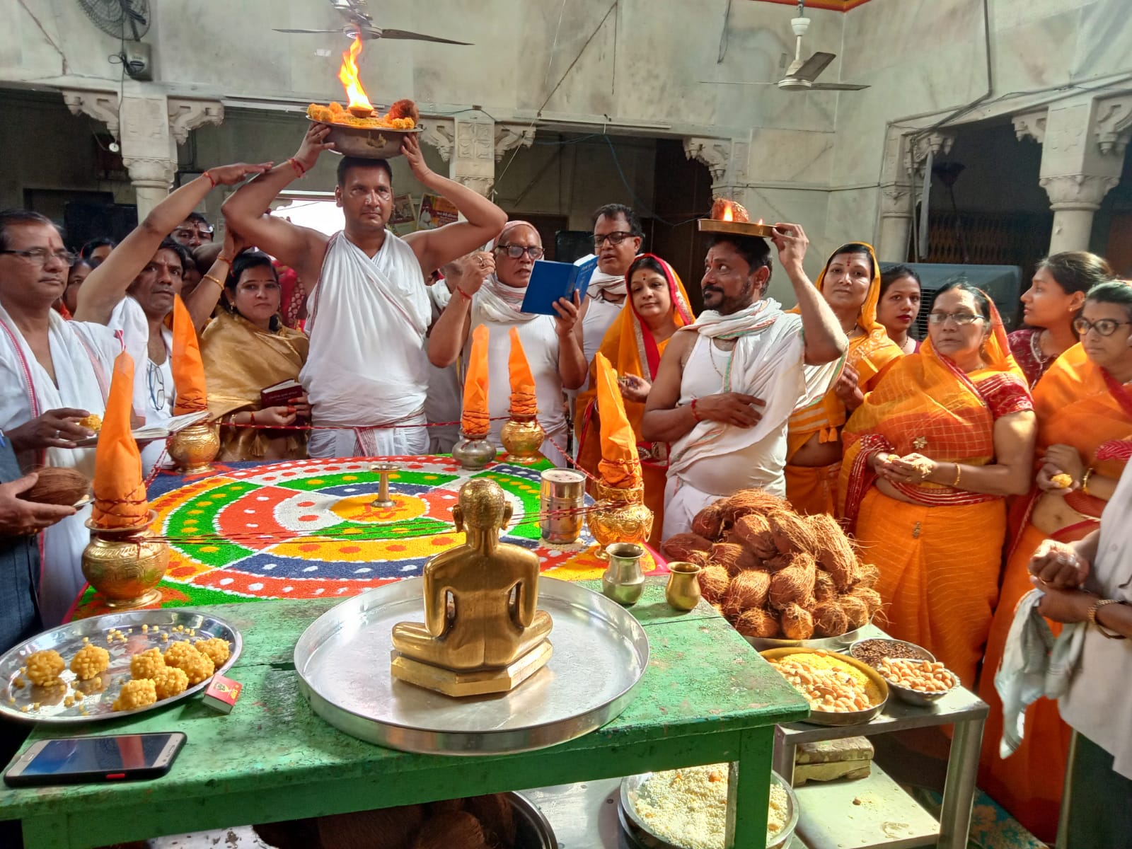जैन समाज के प्रवक्ता विमल जौंला व राकेश संधी ने बताया कि रविवार को आयोजित कार्यक्रम में भगवान शांतिनाथ के निर्वाण लड्डू चडाने का सोभाग्य सोधर्म इन्द्र हेमचंद संधी को मिला। इस दौरान मोक्ष कल्याणक महोत्सव को लेकर शांतिनाथ मण्डल विधान आयोजित किया गया जिसमें विधानाचार्य पण्डित सुरेश शास्त्री के मंत्रोच्चार द्वारा सोधर्म इन्द्र के साथ सभी श्रद्धालुओं ने भगवान शांतिनाथ के कलशाभिषेक करके शांतिधारा की। जौंला ने बताया कि सोधर्म इन्द्र परिवारजनों ने मण्डप पर पांच मंगल कलशों की स्थापना की गई जिस पर संगीत के साथ 120 श्री फल समर्पित किए गए। विधान के बीच संगीतकार सोभागमल सोगानी अजीत काला एवं गायक विमल जौंला ने पंखीडा़ रे उड़ ना जाना चांदनपुर मे, पारस प्यारा लागे जिनेश्वर प्यारा लागे, खोल्या रे भण्डार नाभि राजा बांको, तेरा द्वारा कितना प्यारा यहीं गुजारु जीवन सारा, सहित अनेक भजनों की प्रस्तुतियो पर श्रद्धालुओं ने भक्ति नृत्यों की प्रस्तुतियां दी जिसमें श्रद्धालु झूम उठे। जौंला ने बताया कि विधान मे शांति पाठ स्त्रोत विनय पाठ देव शास्त्र गुरु पूजा भगवान शांतिनाथ पूजा के साथ गाजेबाजे से शांतिनाथ मण्डल विधान अनुष्ठान किया गया जिसमें चार वलय मे आठ सोलह बत्तीस और चौसठ श्री फल अर्ध्य चडा़ये गए। विधान के पश्चात शांतिनाथ मण्डल विधान की रचना करके श्री जी की महाआरती की गई।