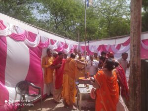 धर्म परायण नगरी लसाडिया ग्राम में आज भारत गौरव आर्यिका रत्न 105 विज्ञा श्री माताजी की स संघ के पावन सानिध्य में , प्रतिष्ठाचार्य डा.अभिषेक जैन शिक्षाचार्य दमोह के दिशानिर्देश में विभिन्न मंत्रोच्चारणों के बीच दो दिवसीय चल रहे वेदी प्रतिष्ठा महोत्सव में श्री भागचंद -कांता देवी पाटनी विवेक विहार जयपुर ने झंडारोहण कर कार्यक्रम का किया शुभारंभ