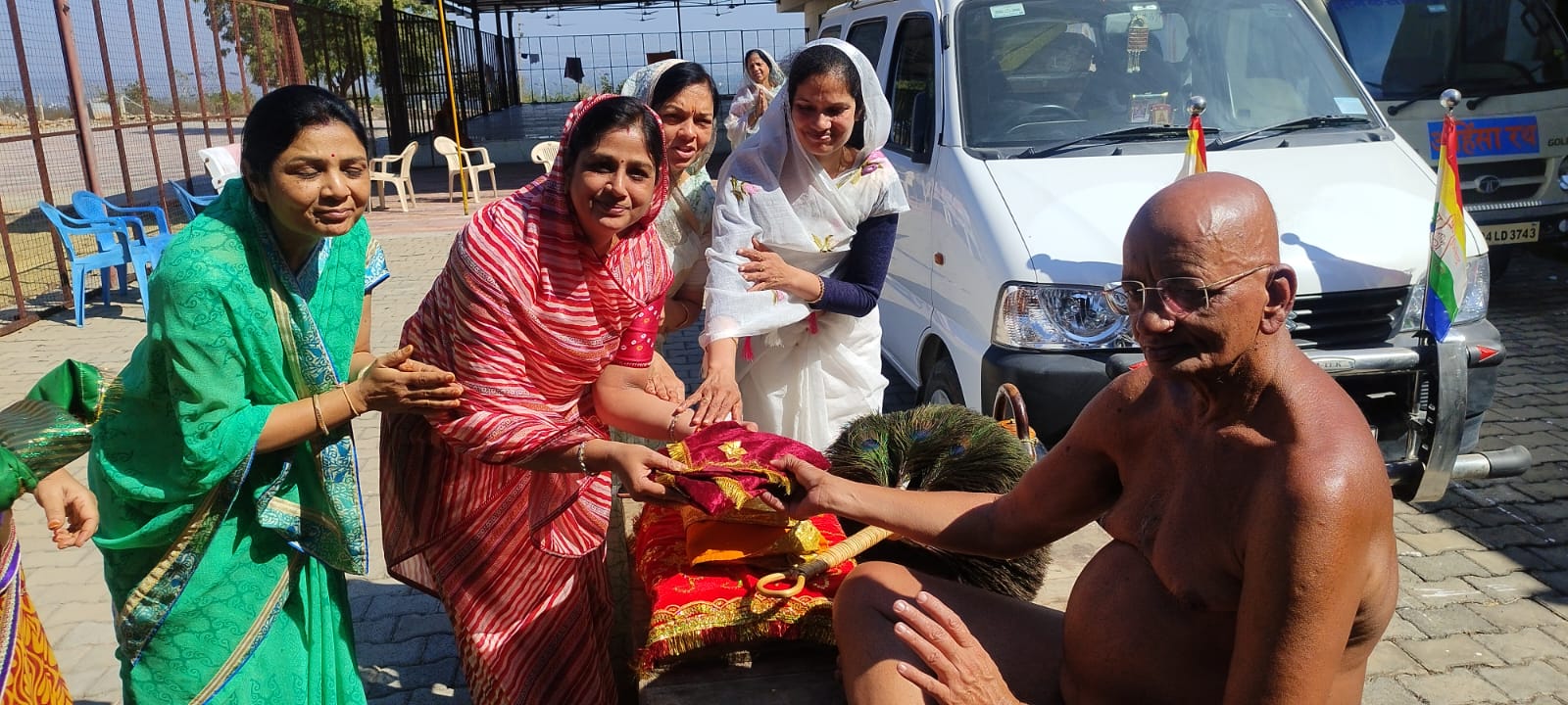 परम पूज्य आचार्य श्री आर्जव सागर महाराज संघ की मॉडर्न टोल कांटे पर मित्तल परिवार ने की मंगल अगवानी