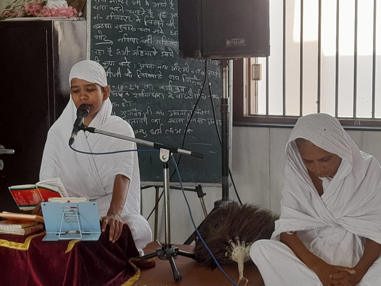 गणिनी गुरु मां विशुद्ध मति माताजी के सानिध्य मे हो रही अखंड णमोकार मंत्र आराधना में भक्तिमय वातावरण बना